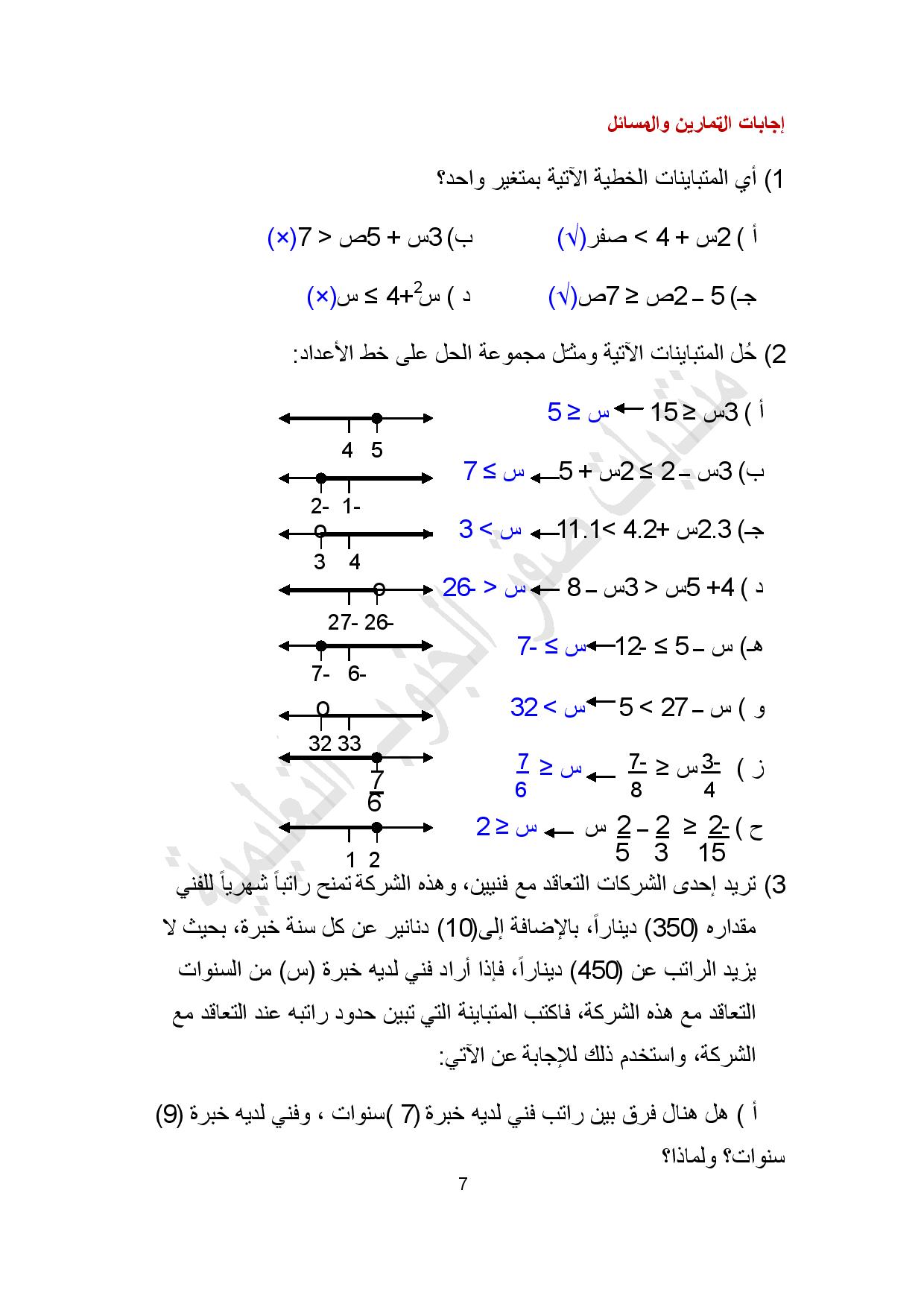 الش روع ببناء نموذج رياضي يكشف عن المشكلة بدقة بالاعتماد على المتباينات والمعادلات. يتم تمثيل المتباينات الخطية ومتباينات القيمة المطلقة بيانيا عن طريق رسم الحدود التى تمثل تحويل المتباينة الى معادلة تم اختيار الجزء الذي يحقق المتباينة. هل تبحث عن افضل شركة لمكافحة الحشرات. المتباينات الخطية فى متغير واحد.