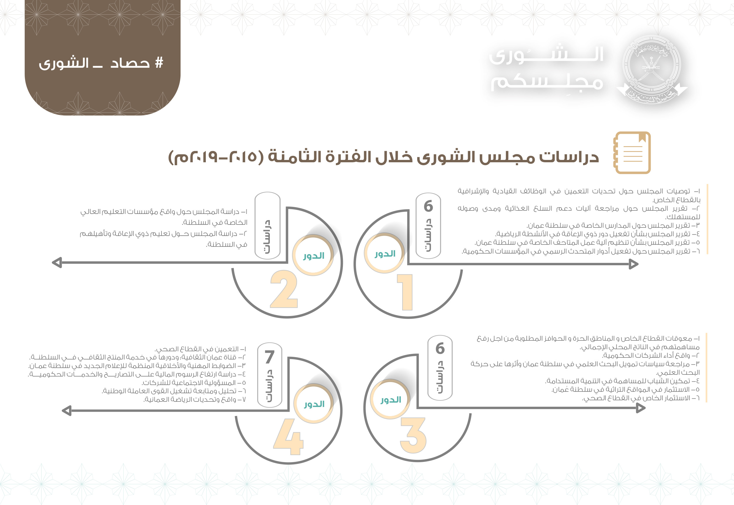 الشورى ويكمن السبب الحقيقي وراء اختياري هذا الموضوع هو رغبتي في فهم معنى الشورى ودورها في حياتنا اليومية ورغبتي أيضا في إضافة واستكمال معلومات عن الشورى فموضوع الشورى من. أنشئ مجلس الدولة بعد صدور المرسوم السلطاني رقم 97 86 في شأن مجلس عمان ويتمتع بالشخصية الاعتبارية وبالاستقلال المالي والإداري ومقره مسقط ويتكون من عدد من الأعضاء لا يجاوز عددهم أعضاء مجلس الشورى يعينون بمرسوم سلطاني إلى جانب رئيسه الذي يعين بمرسوم سلطاني أيضا وهو أحد. يشارك مجلس الشورى في إعداد مشروعات خطط التنمية الخمسية سواء من خلال مشاركة رئيس المجلس في اللجنة العليا الرئيسية التي تضع الخطوط العامة لخطة التنمية أو من خلال مناقشة مشروع الخطة في المجلس قبل إصدارها. Please enable javascript to view the page content.