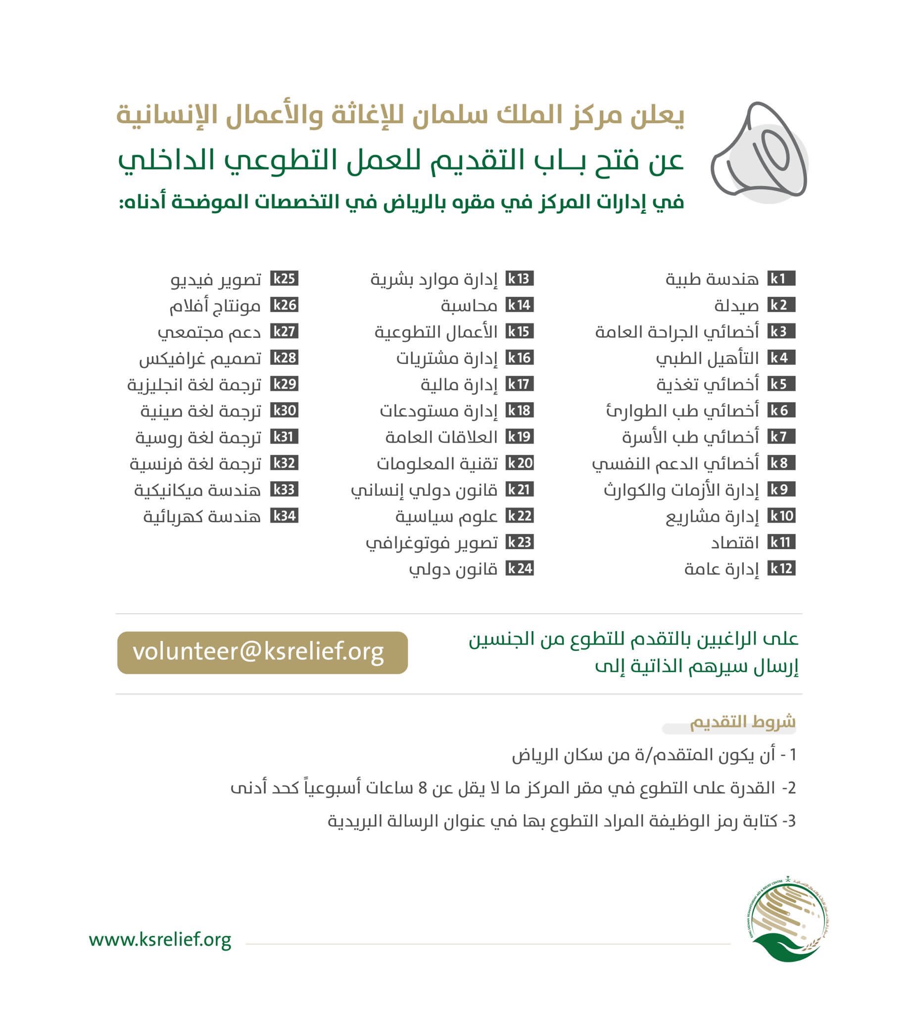 بحث عن مركز الملك سلمان للإغاثة والأعمال الإنسانية. مكة المكرمة 26 رمضان 1440 هـ الموافق 31 مايو 2019 م واس يشارك مركز الملك سلمان للإغاثة والأعمال الإنسانية بجناح في المعرض المقام تزامنا مع انعقاد القمم الثلاث الخليجية والعربية والإسلامية التي استضافتها المملكة العربية. وو ف ق الإحصائيات الصادرة عن مركز الملك سلمان للإغاثة والأعمال الإنسانية بادر المركز بتقديم العون والمساعدة للأشقاء في اليمن عبر تنفيذ حزمة من المشروعات بالتعاون مع 80 شريكا فقد وصل. بحث عن مركز الملك سلمان للإغاثة. مركز الملك سلمان للإغاثة والأعمال الإنسانية.