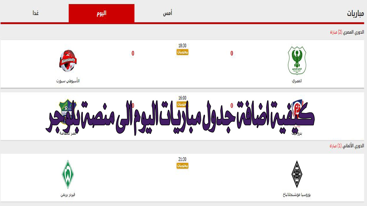 طريقة اضافة جدول مباريات اليوم الى منصة بلوجر الافندي